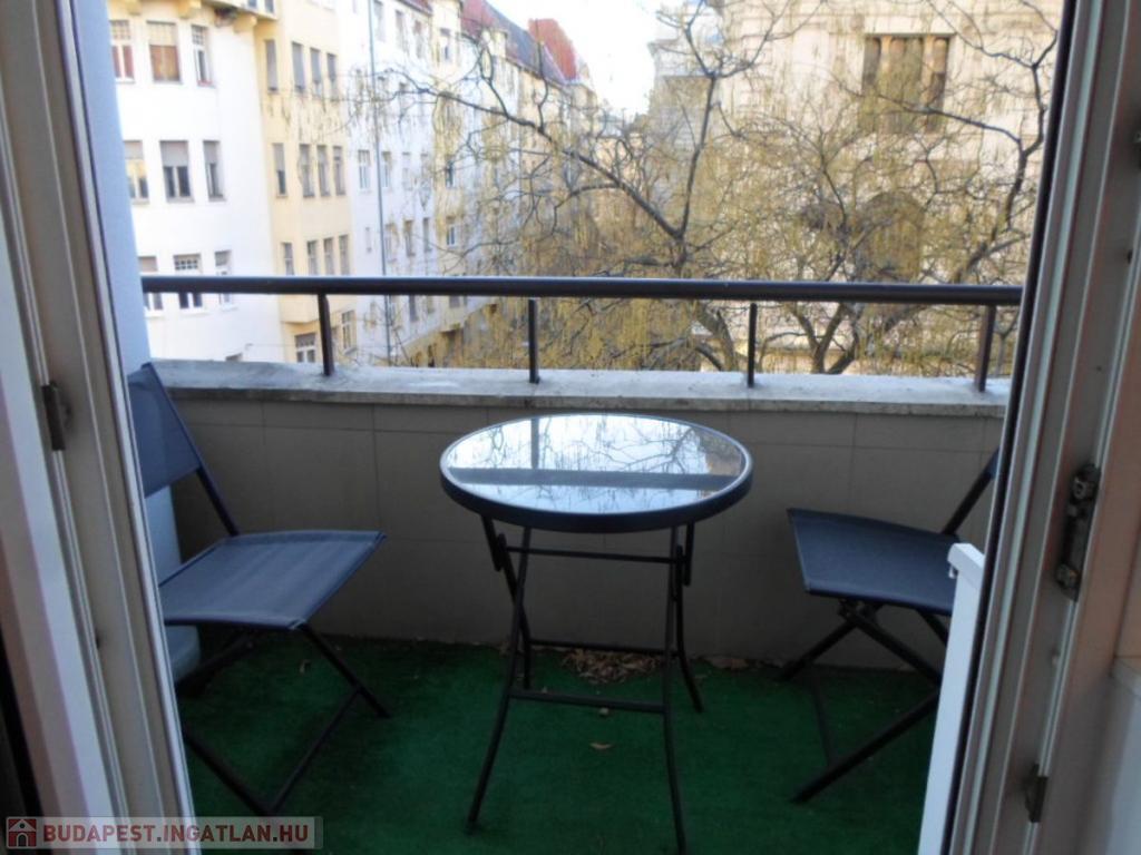 Kiadó Budapest V.ker. Szalay utcában, rendezett liftes ház 4.emeletén egy 92 nm-es, 3 szobás, panorámás, erkélyes (6 nm-es), légkondicionált, riasztós, bútorozott, gépesített, SZÁMLAKÉPES lakás.