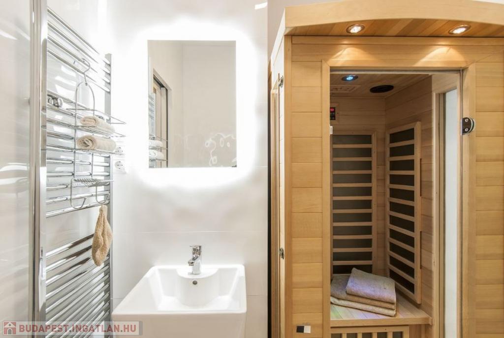 Az infra szaunában a stressztől megszabadulhat, az erkélyről a Parlamentben gyönyörködhet.