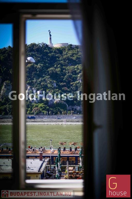 A lakásból csodás kilátás nyílik a Szabadság hídtól az Erzsébet hídig a Gellért-hegyre.