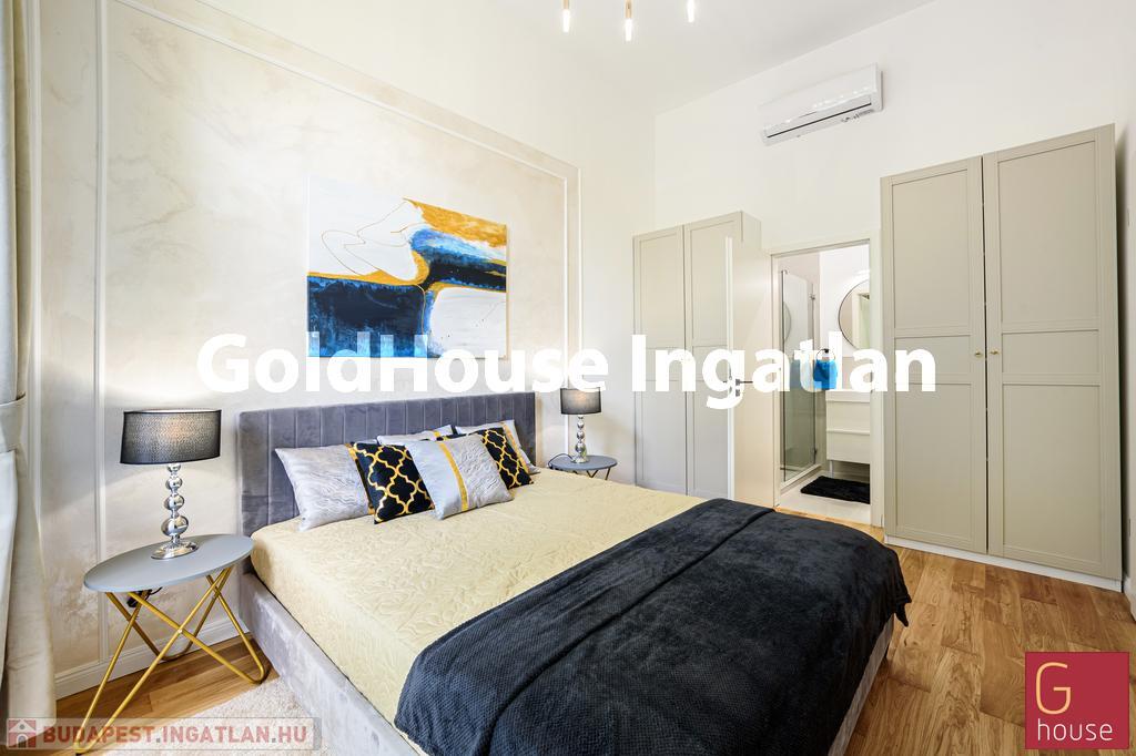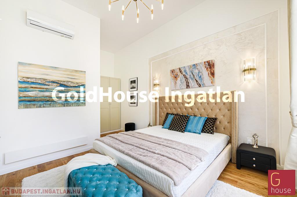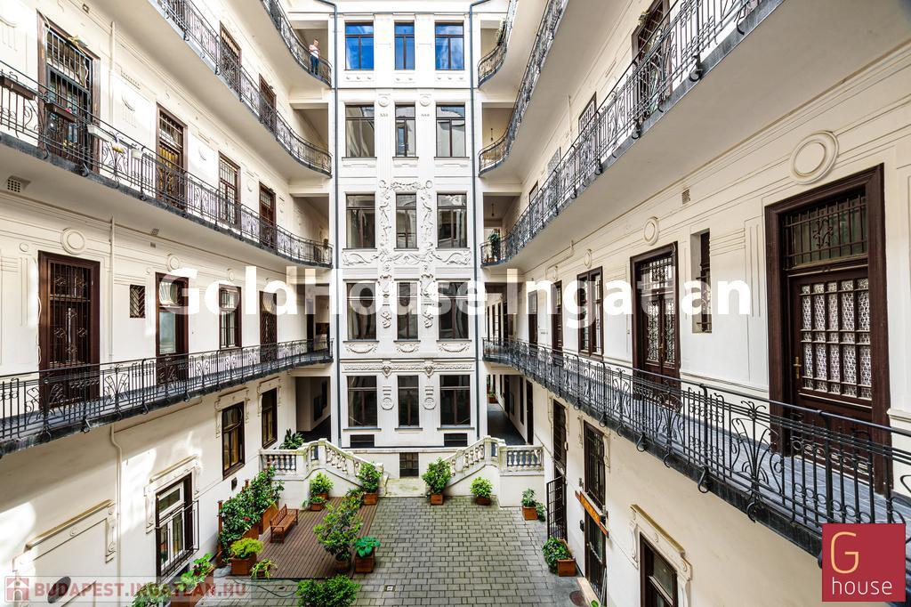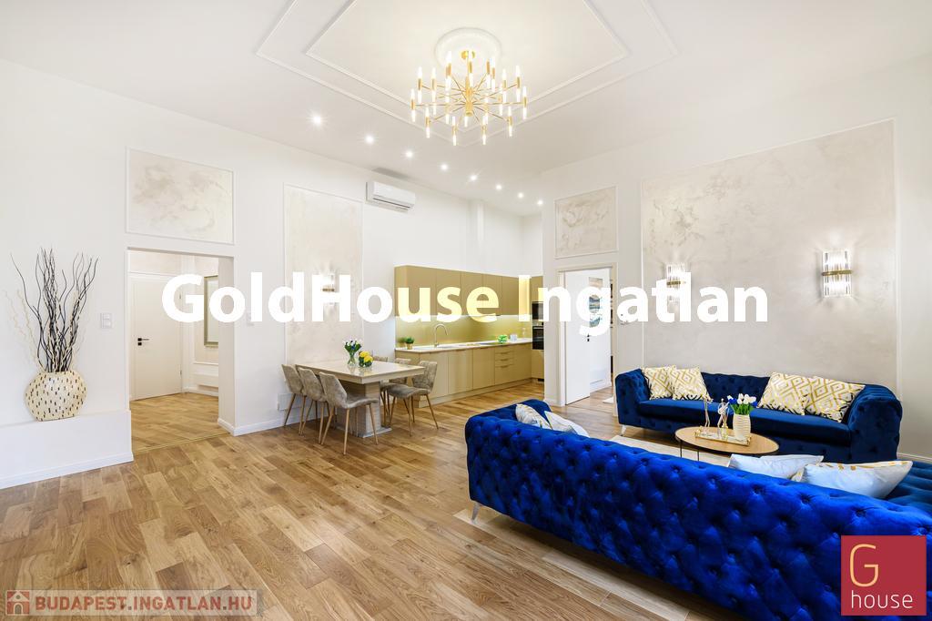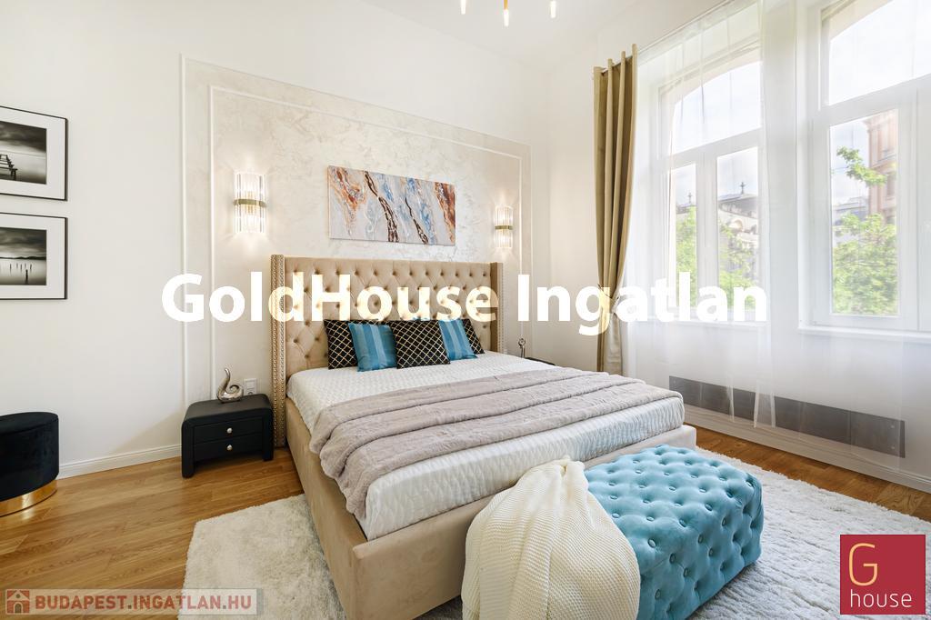 Az ingatlan belsőépítész által egyedi design megoldások alkalmazásával átépített belvárosi, nagypolgári, nagy belmagasságú 3.5 szobás (1 nappali, 3 külön bejáratú hálószoba) amerikai konyhás, 2 fürdőszobás, klimatizált, cirkófűtéses lakás.