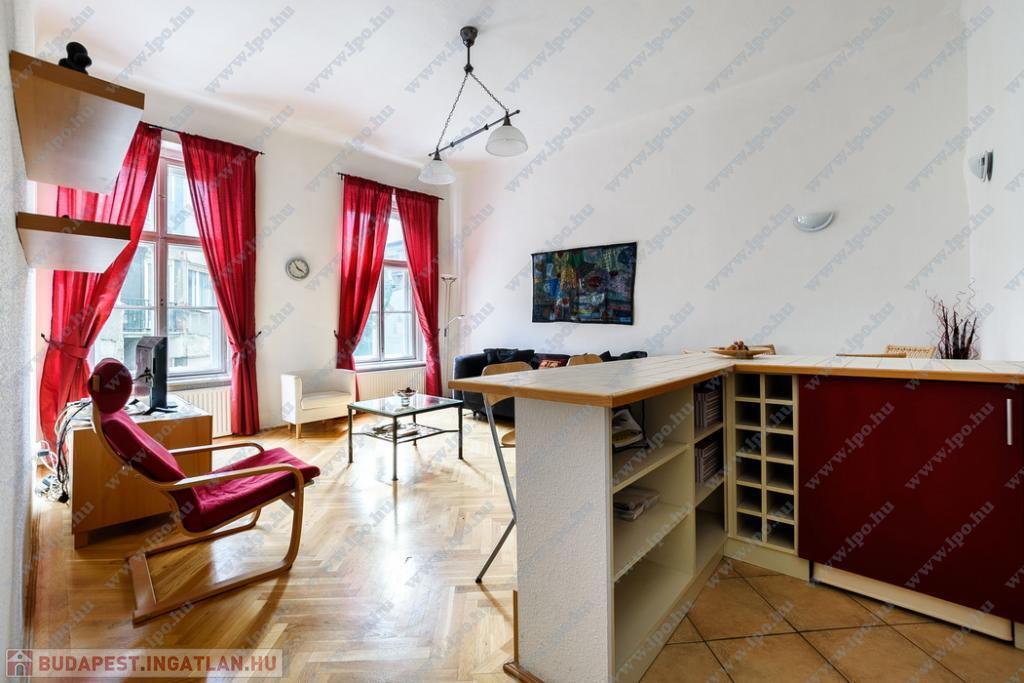 Kiadó 16 nm-es SZOBA Budapest, VI. kerület Hajós utcában minimum 6 hónapra egy szépen felújított 65 m2-es, amerikai konyhás nappalis + 2 hálószobás, utcai nézetű, 2. emeleti lakás.