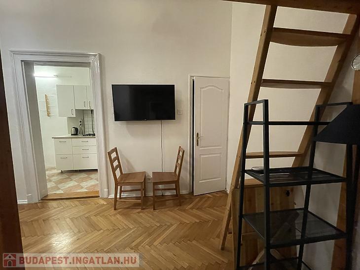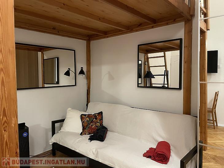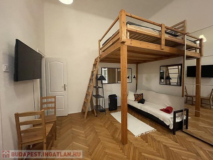 A Nyugati tér közvetlen közelében, a VI. kerület szívében kiadó egy földszinti, frissen felújított, galériás garzonlakás.