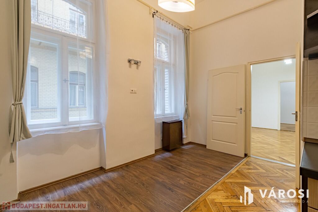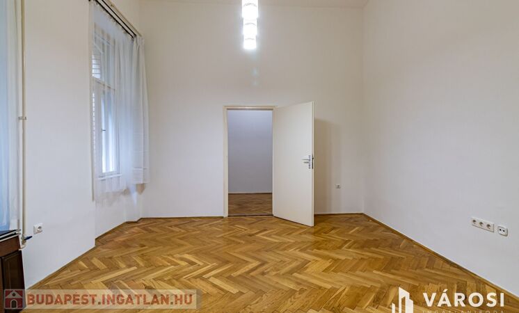 Kiadó a Csengery utcában, egy 51 m2 alapterületű, két egymásból nyíló szobás, bútorozatlan és gépesítetlen, első emeleti, tégla építésű lakás.