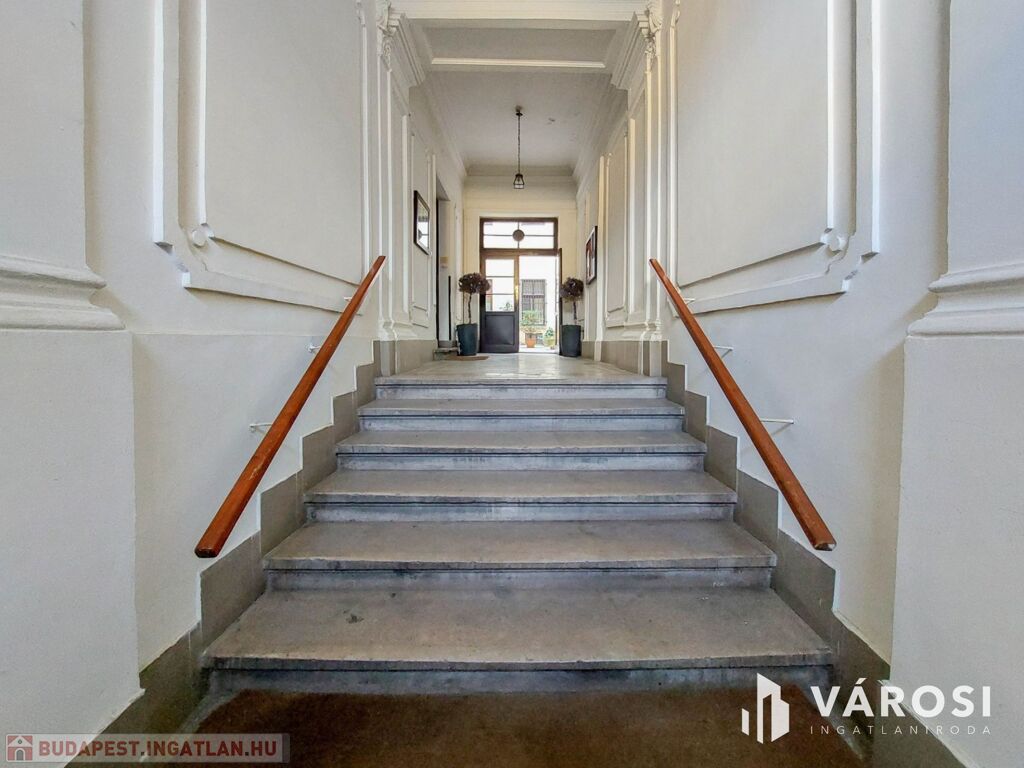 A kiadó ingatlan egy öt szintes, 1936-ban épült, kiválóan karbantartott, tégla építésű ház földszintjén helyezkedik el, a belső udvarból közelíthető meg.