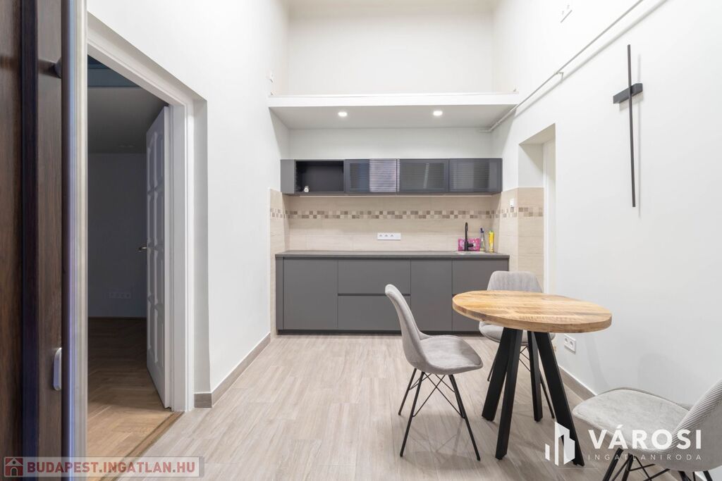 The floor area of the property is 36 m2, but the 20 m2 room, thanks to the high ceiling, also has a 10 m2, elegant-looking standing gallery, which increases the usable space and provides the opportunity to create a bedroom separate from the living room.
