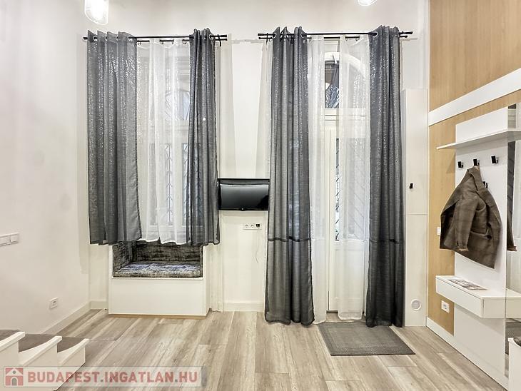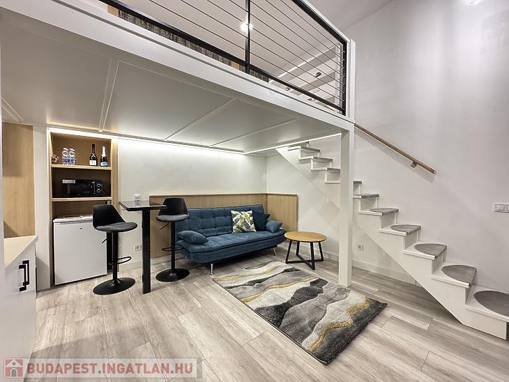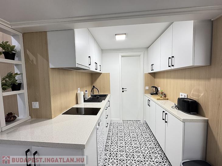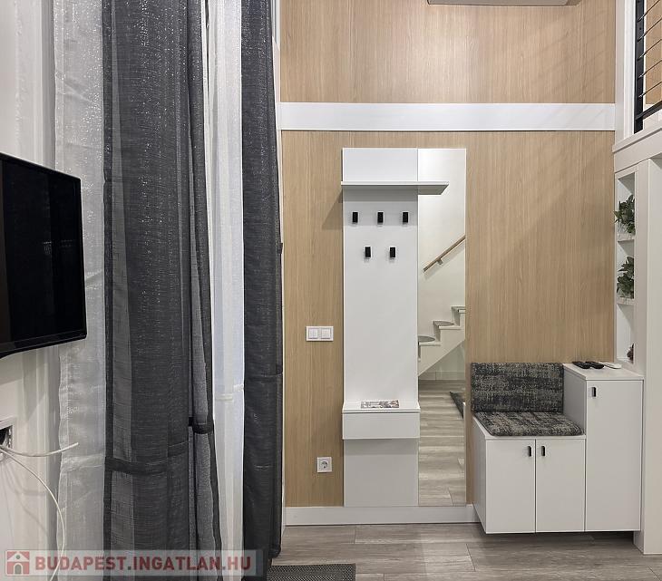 Kiadó egy teljes körűen frissen felújított, modern földszinti lakás amerikai konyhás nappalival és galériával az Eötvös utca 48.-ban, egy szép, csendes társasházban. A felújítás óta még senki nem lakott benne, minden berendezés és bútor vadonatúj.
