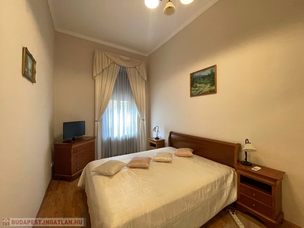 VI. kerületben, a Podmaniczky utcában, közel a Nyugati Pályaudvarhoz kiadó egy 65 m2-es, nappali plusz hálószobás, 3.emeleti, utcai nézetű lakás. Az ingatlan utcai nézete ellenére, csendes, a nyílászárók és a redőnyök cseréje megtörtént, a ház rendezett, liftes ház. A fűtést gázcirkó készülék valamint hűtő-fűtő klíma biztosítja. A gázkazán 3 éves, a hűtő-fűtő klíma most lett tisztítva. A közös költség 22.000 Ft, az ingatlanban minden egyedi mérős. A lakás igényesen bútorozott, gépesített, -gáztűzhely, sütő, nagy hűtőszekrény, mosogatógép, mosógép, szárítógép- rendelkezésre áll. A környék felszereltsége kimagasló.A közelben patika, posta, éttermek, a West-end bevásárlóközpont, az M3-as metró, a 4-6-os villamos. Az ingatlan minimum 1 éves időtartamra kiadó, két havi kaucióval, egy havi bérleti díjjal azonnal költözhető. Az ingatlanban kisállat tartása valamint dohányzás nem lehetséges.