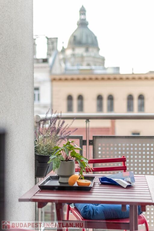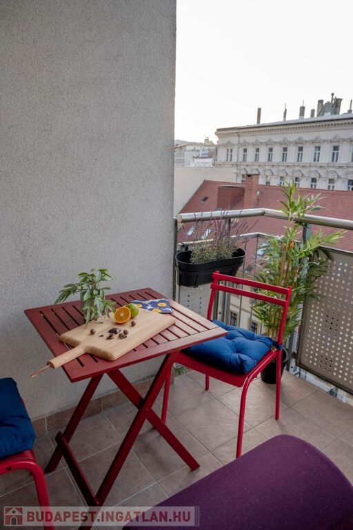 For rent in Budapest, District VI, on Paulay Ede Street, on the 5th floor of a well-maintained building with an elevator and a concierge service: a 50 sqm, LIKE-NEW apartment with an American-style kitchen + living room, 1 bedroom, and a balcony, fully furnished and equipped, offering full comfort.
