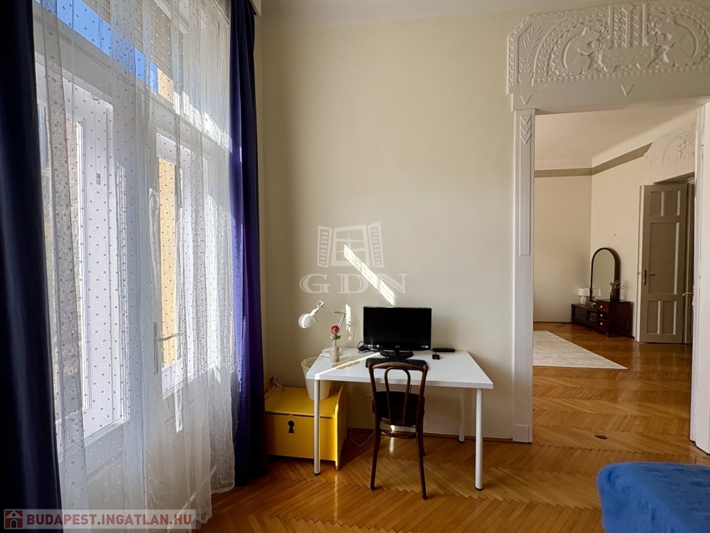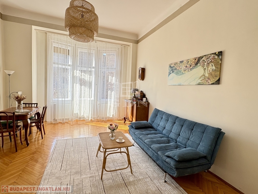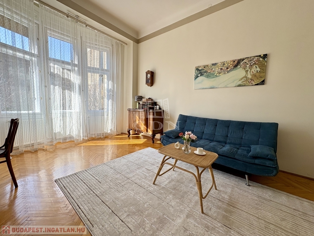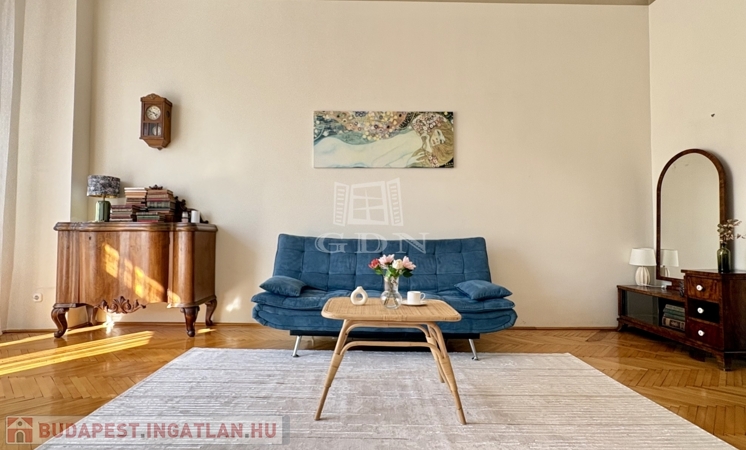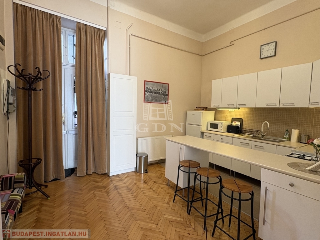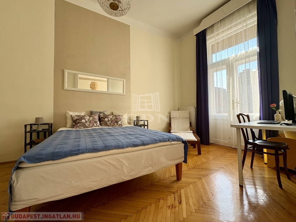 Budapest VI. kerületében, az Oktogon és a Nyugati tér közelében hosszú távra kiadó egy 70 m²-es, 2 szobás (nappali + külön hálószobás), világos, erkélyes lakás.