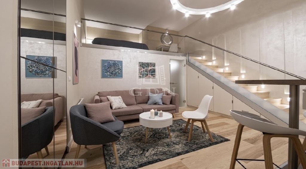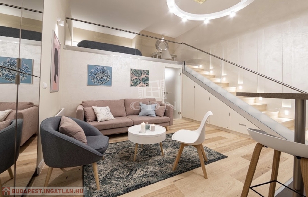Kiadó az Ó utca központi, mégis csendes részén egy 34 m²-es, belső állógalériás ingatlan, amely lakásként és irodaként egyaránt kiválóan használható.