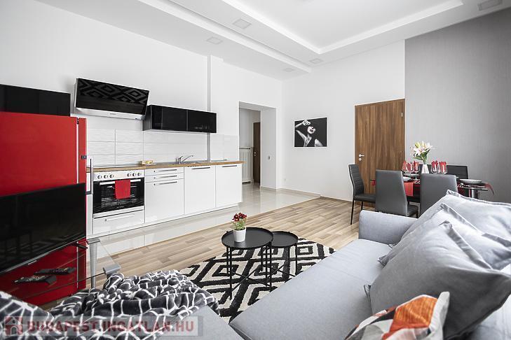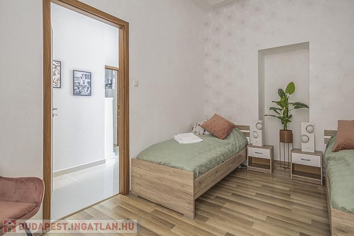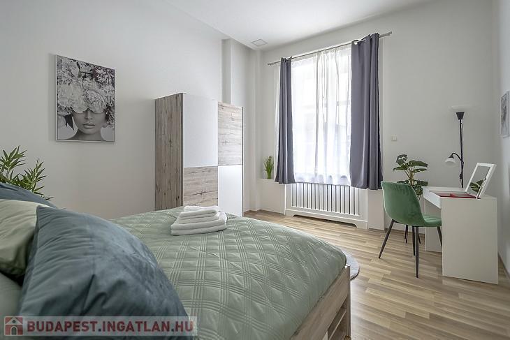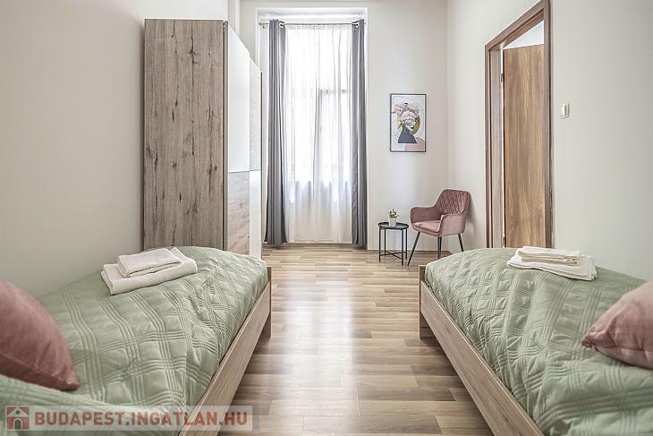 Kiadó egy világos, kényelmes, két külön nyíló szobával és egy tágas nappalival rendelkező, bútorozott és teljesen gépesített lakás a Jókai tér 6. szám alatt. A lakás egy rendezett, csendes társasházban található. A Jókai tér környéke élénk, frekventált és rendkívül kedvelt, néhány perc sétára van az Andrássy úttól és a Nyugati pályaudvartól, a közelben pedig számos étterem, kávézó, üzlet és szolgáltatás elérhető. A közlekedés kiváló: a Nyugati metrómegálló, a 4-6-os villamos, valamint több buszjárat is rövid sétatávolságra elérhető, így a belváros bármely része gyorsan megközelíthető. A lakás előzetes egyeztetéssel tekinthető meg, bérléséhez két havi kaució és egy havi bérleti díj szükséges, valamint a közjegyzői okirat költségének felét a bérlő fizeti. A lakás január 5-től költözhető.