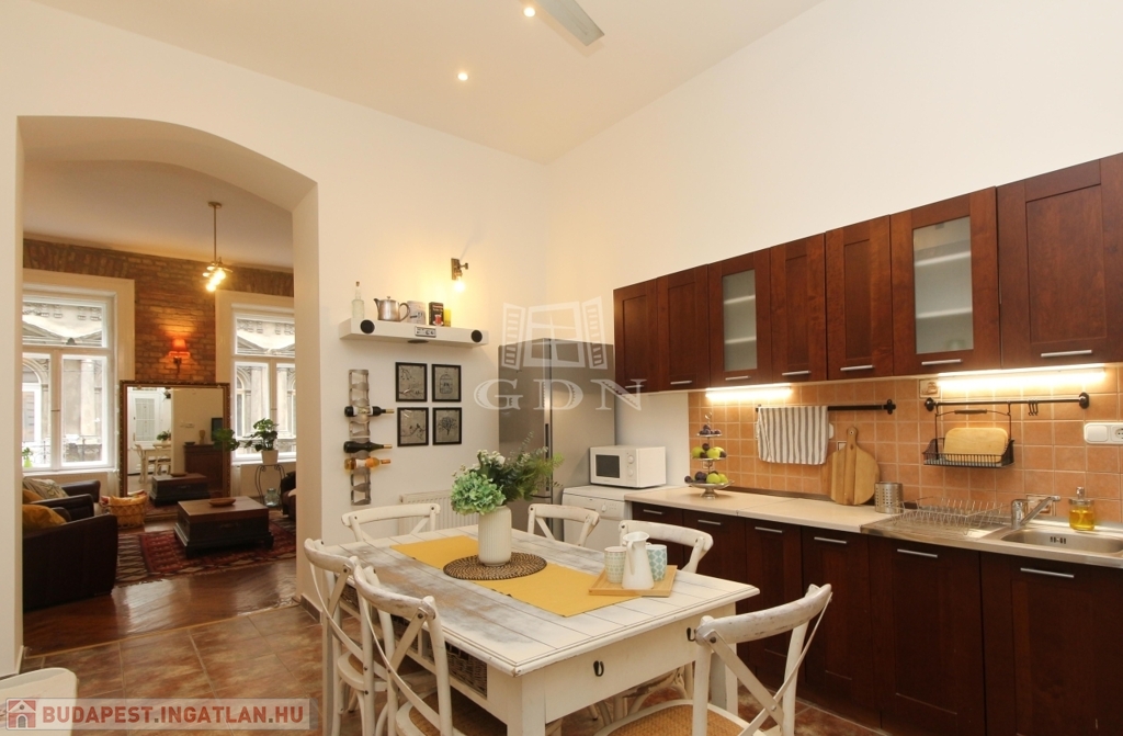 Az ingatlan Terézváros központi részén található. A lakás egyediségét a tradicionális polgári hangulat a finom belsőépítészeti megoldások és az egyedi lakberendezői munka teszi izgalmassá.
