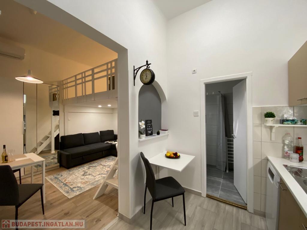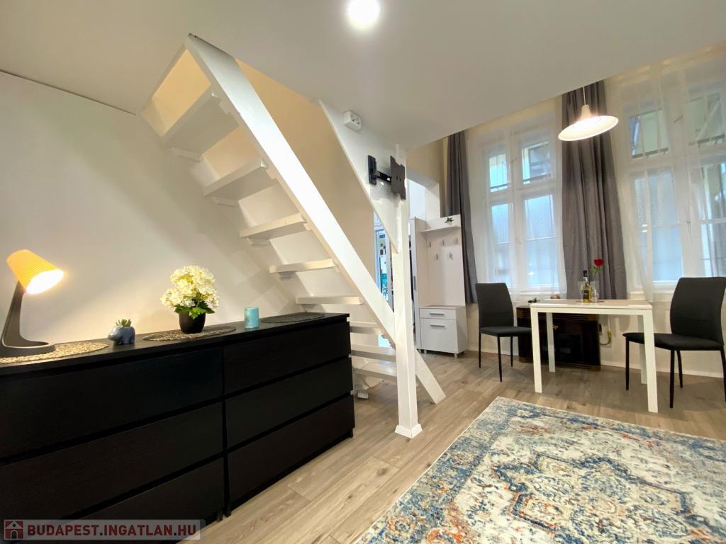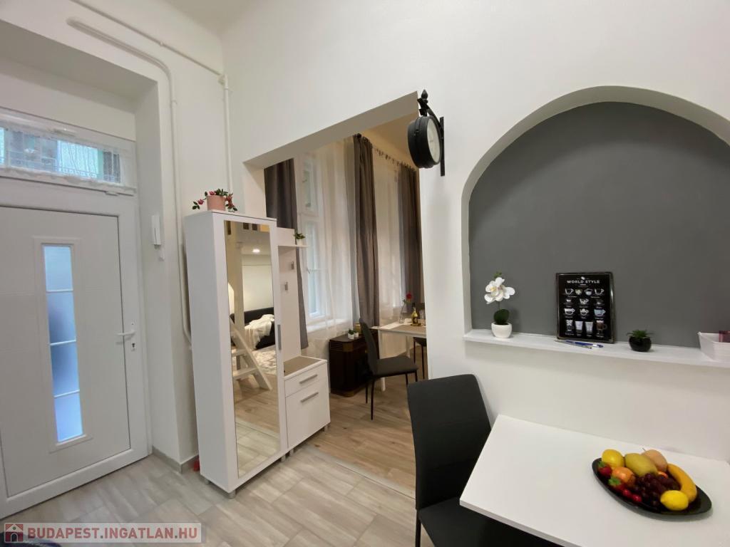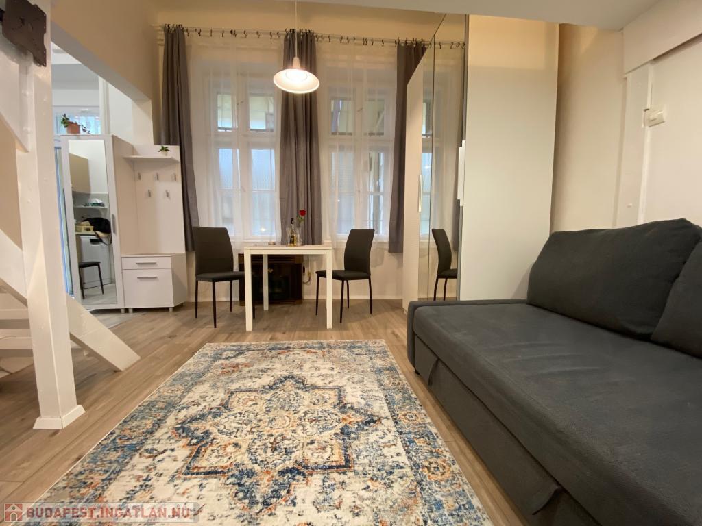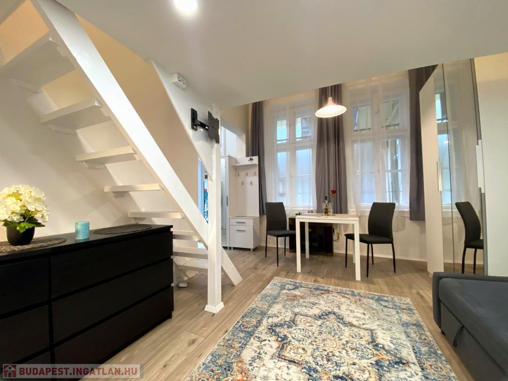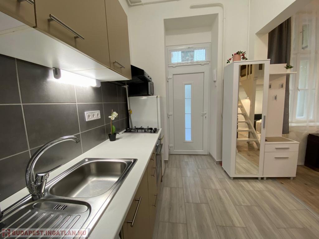 Budapest VII. kerületében, a Hernád utcában, kiváló közlekedés mellett kiadó egy 28 nm-es, teljeskörűen felújított, stúdió jellegű garzonlakás. A rendezett, háromszintes ház földszintjén található lakás fiatalos hangulatú, praktikus elrendezésű és azonnal költözhető.