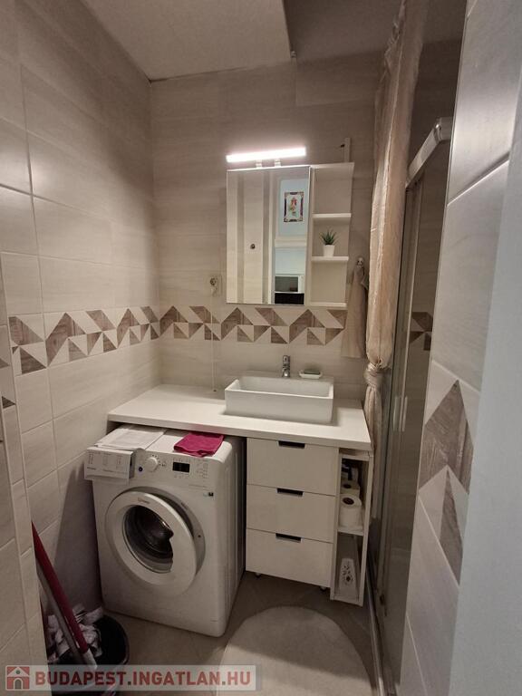 A lakás nagy utcára néző szobával, konyhával és zuhanyzós fürdővel, WC-vel rendelkezik, fiatalosan bútorozva és gépesítve kiadó.