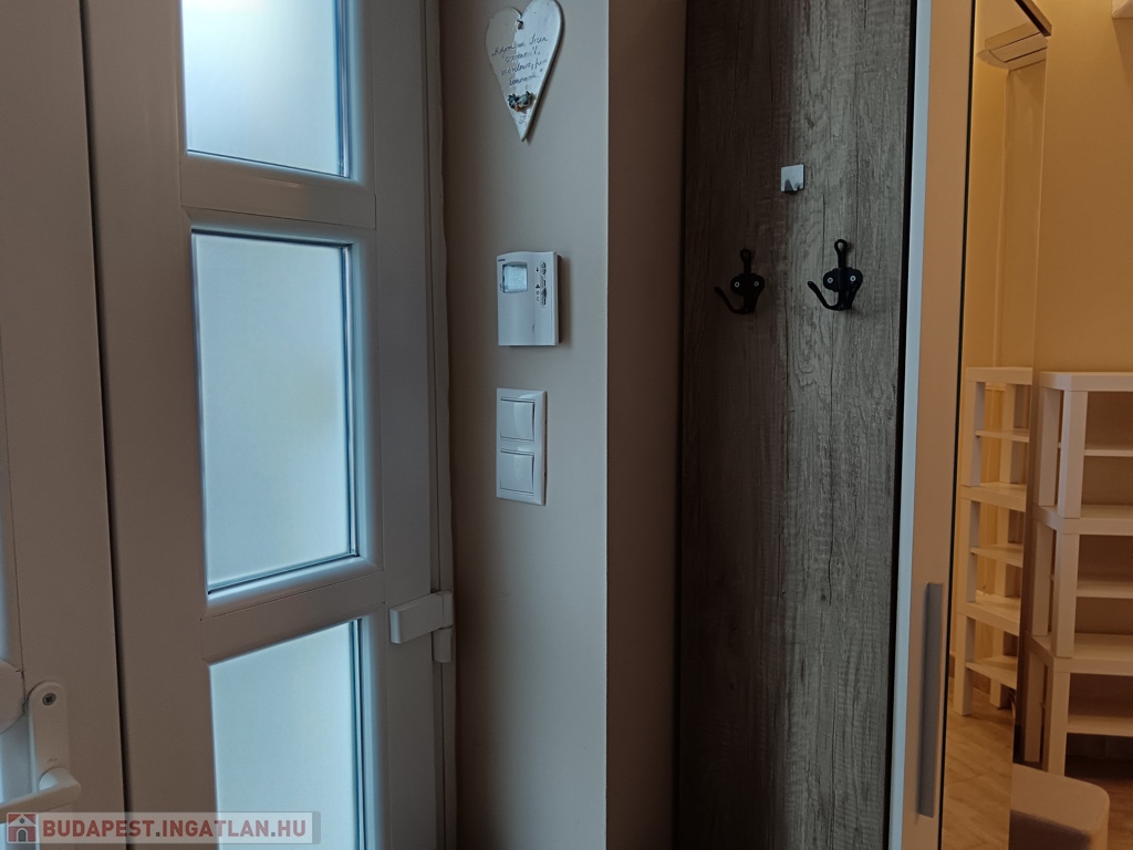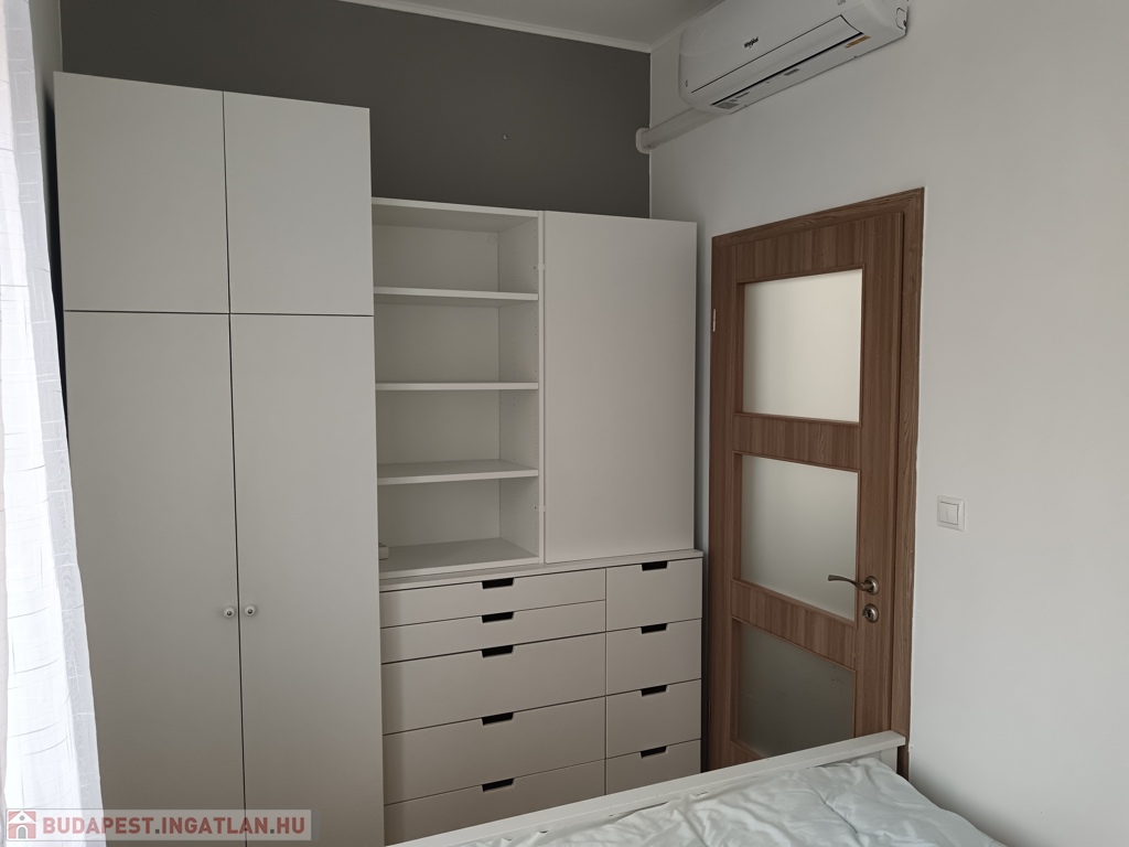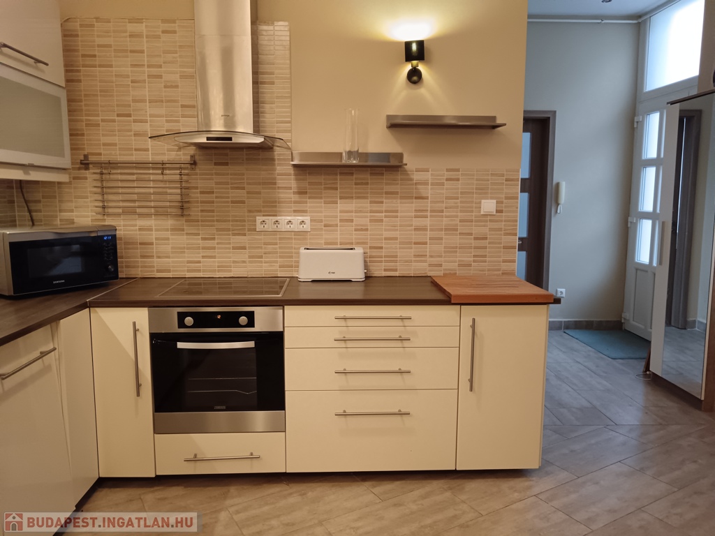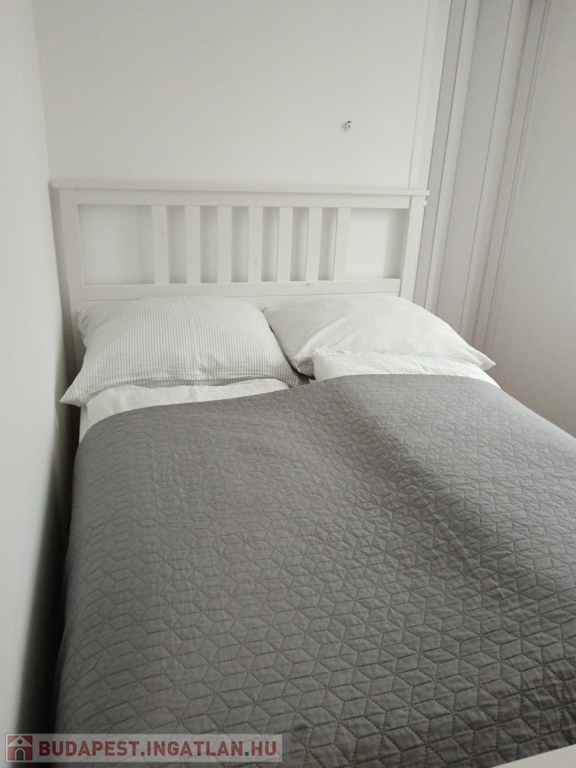 Kiadó lakás egy liftes ház 4. emeletén, csendes, belső udvarra néző, teljesen felújított, 49 m2-es lakás. A lakás teljesen gépesített, bútorozott, felszerelt. Helyiségek: nappali-konyha, külön nyíló hálószoba, hálófülke, tárolókamra, fürdőszoba, külön WC. Biztonsági ajtó, klíma, redőnyös ablakok, saját víz-, gáz-, villanyóra biztosítja a kényelmet. A lakásba háziállat nem hozható, dohányzás nem megengedett.