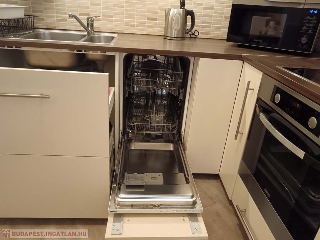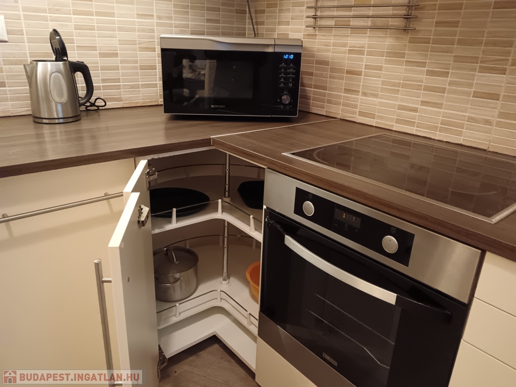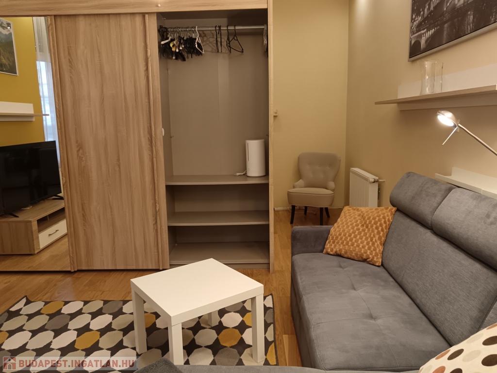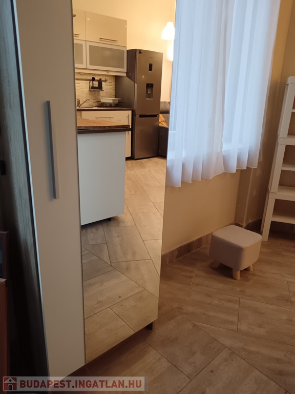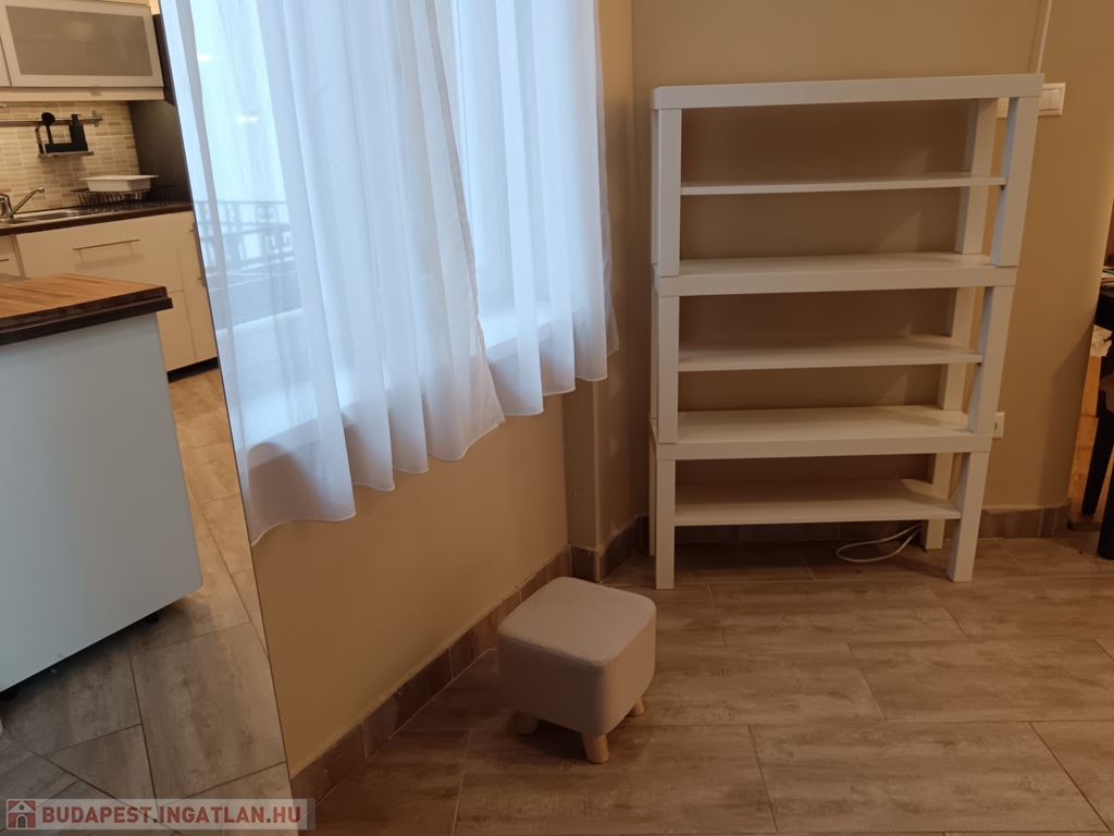 Kiadó lakás egy liftes ház 4. emeletén, csendes, belső udvarra néző, teljesen felújított, 49 m2-es lakás. A lakás teljesen gépesített, bútorozott, felszerelt. Helyiségek: nappali-konyha, külön nyíló hálószoba, hálófülke, tárolókamra, fürdőszoba, külön WC. Biztonsági ajtó, klíma, redőnyös ablakok, saját víz-, gáz-, villanyóra biztosítja a kényelmet. A lakásba háziállat nem hozható, dohányzás nem megengedett.