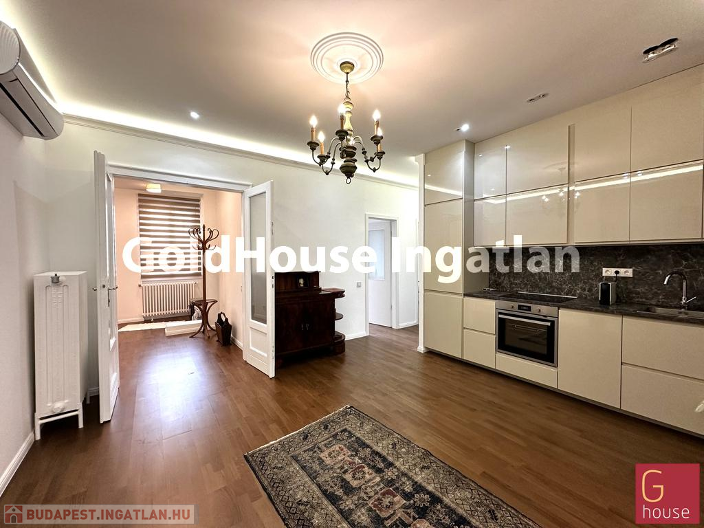 VII. kerületben, a Károly körúton, azonnal költözhető, teljesen felújított, 100m²-es, 3 hálószobás, amerikai konyhás, duplakomfortos, klímás lakás hosszú távra kiadó. LAKÁS CÉLJÁRA vagy akár IRODÁNAK is ideális.