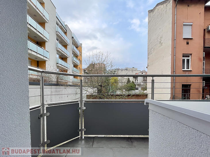 Csarnoknegyedben, egy 2006-ban épült, lifttel rendelkező társasház 1.emeletén, erkélyes lakás kiadó.