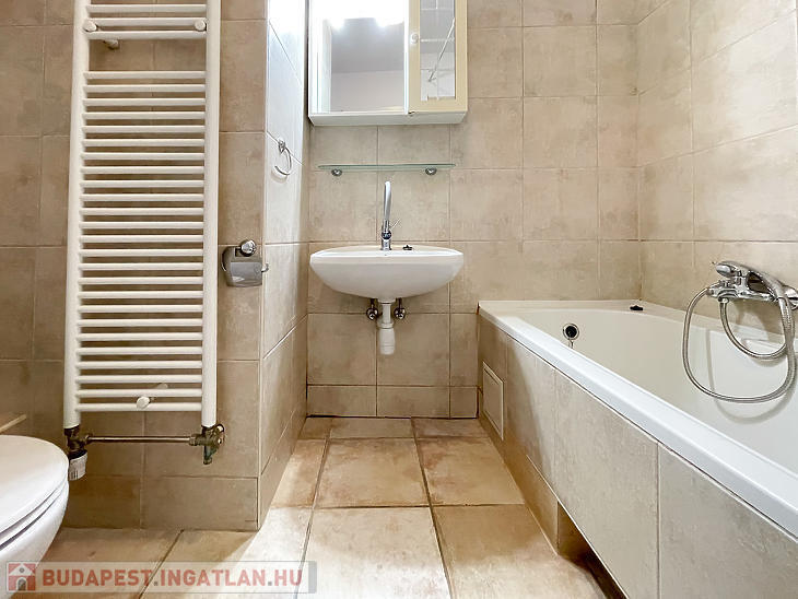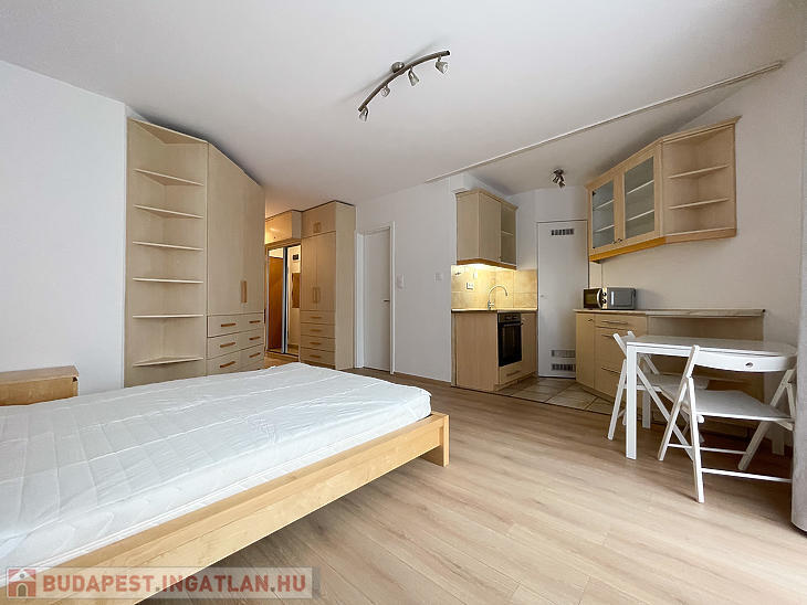 Az ingatlan egy szobás, kádas fürdőszobával és kamrával rendelkezik, illetve több beépített ruhásszekrény is található a lakásban.