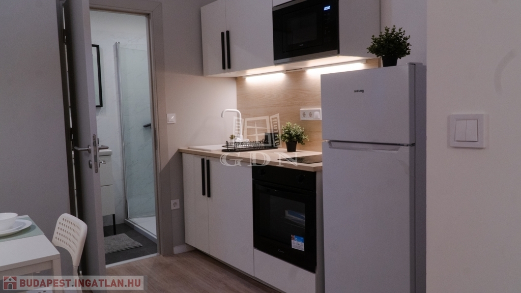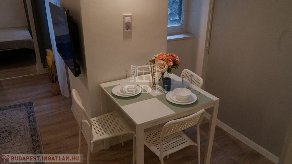 Budapest VIII. kerületében, a Népszínház utcában kiadó egy 25 m²-es, teljesen bútorozott garzonlakás. Az eszközök szintén teljesen újak, illetve még használva sem voltak.