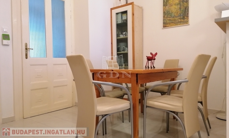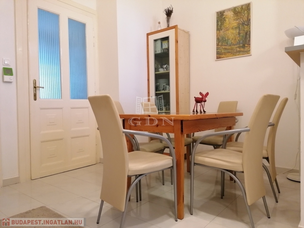 A lakás teljesen bútorozott és gépesített (mosógép, hűtő, mosogatógép, sütő, elektromos főzőlap, beépített páraelszívó).