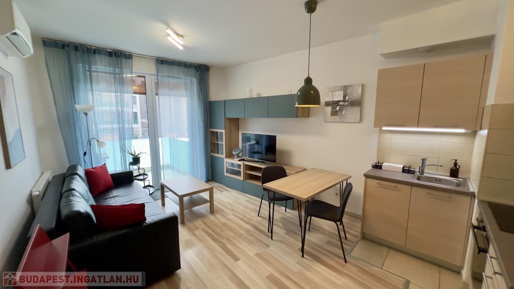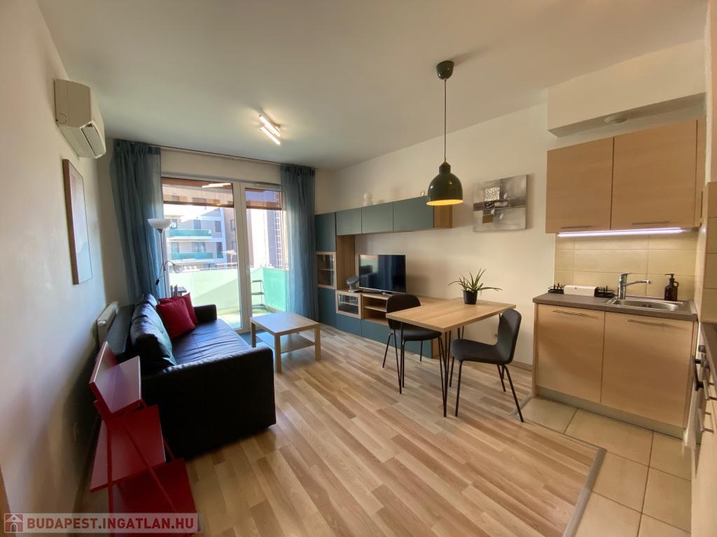 A Corvin sétány egyik közkedvelt épületében, a Park Residence-ben, 2017-ban épült, modern társasházban kínálunk kiadásra egy bútorozott, amerikai konyhás + hálószobás, erkélyes lakást.