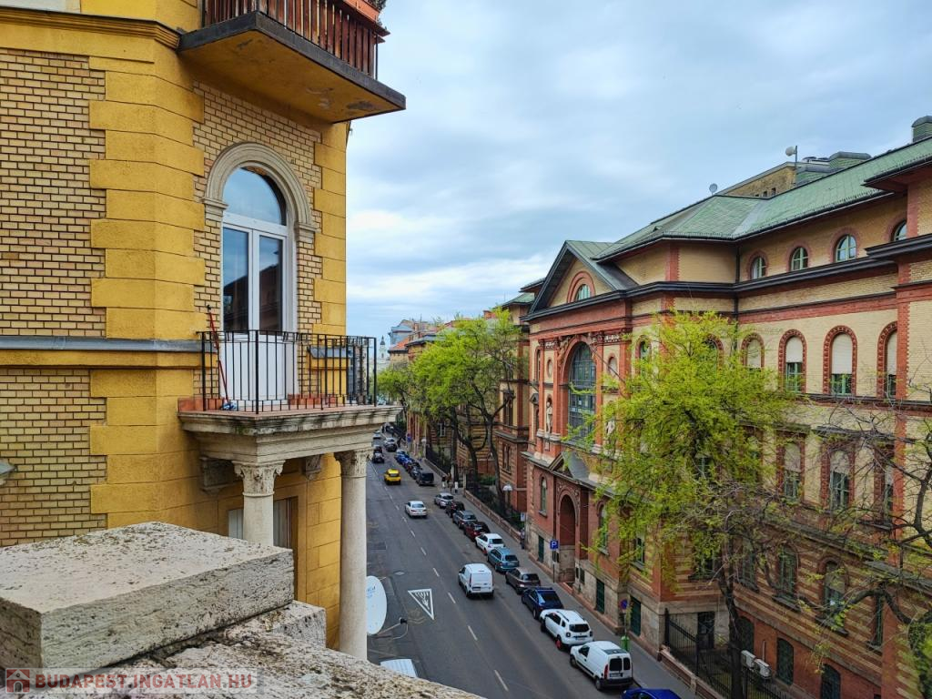 Két szoba ablakai utcára, egy a ház csendes, belső udvarára néz. Az ablakok rendenyősek.