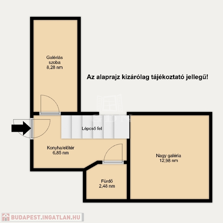 - 1 db 12 m²-es ággyal rendelkező galéria