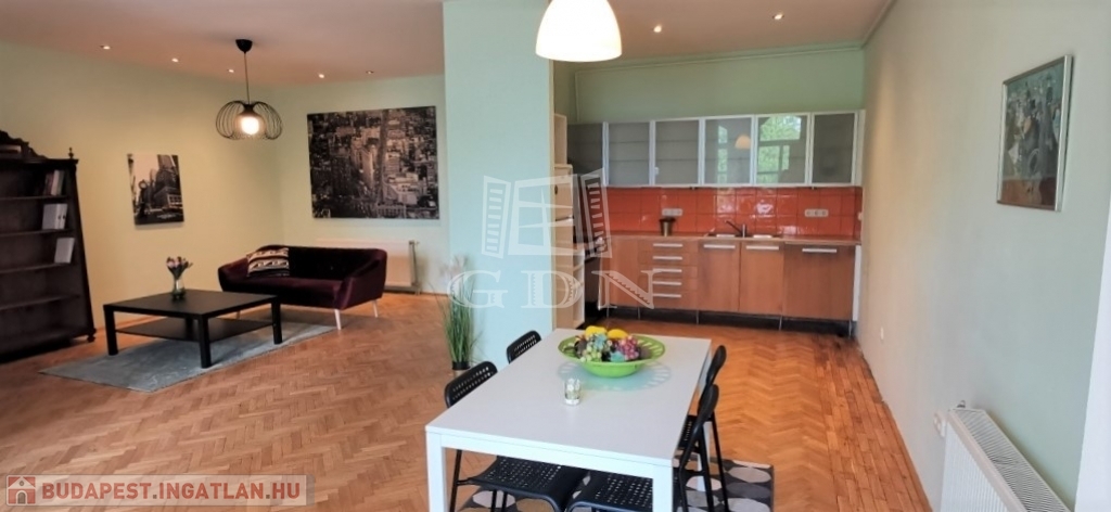 A lakás bútorozott, gépesített konyhával és mosógéppel felszerelve.