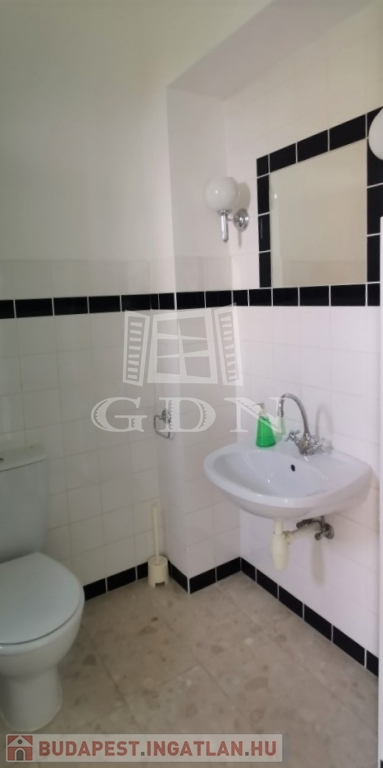 A fürdőszoba a nappali és hálószoba között található, a bejárat mellett külön háztartási helyiség WC-vel és kézmosóval. Fűtés: cirkó kazán.
