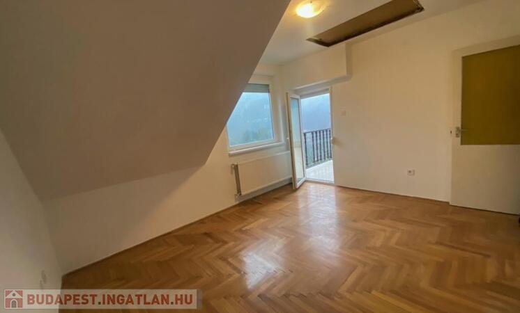 Budán a XII. kerület Lidérc utcájában, csendes, zöldövezeti környezetben kiadó egy 80 m-es, jó állapotú, legfelső III. emeleti világos lakás egy háromlakásos lift nélküli családi házban, 880 m-es telken.