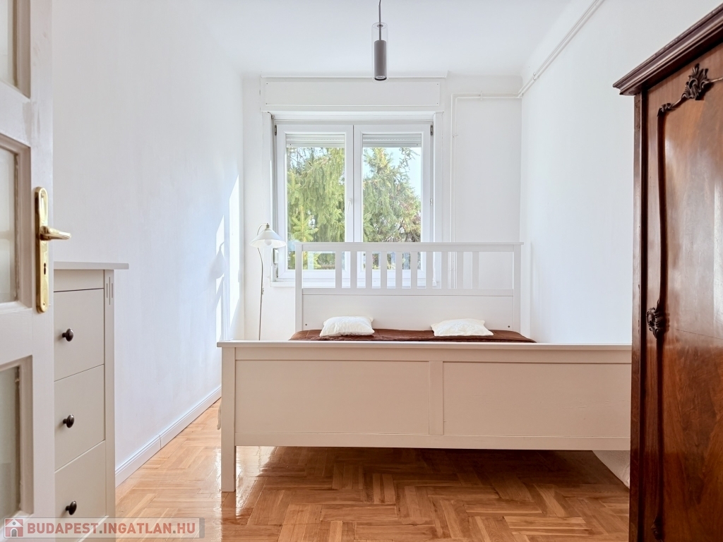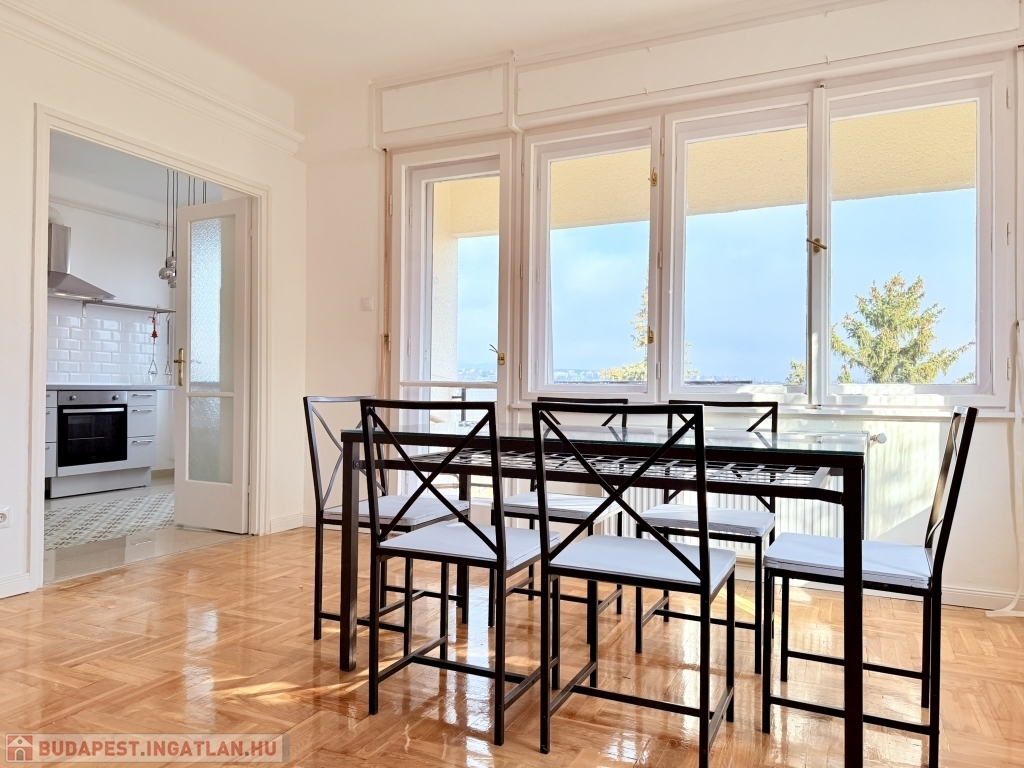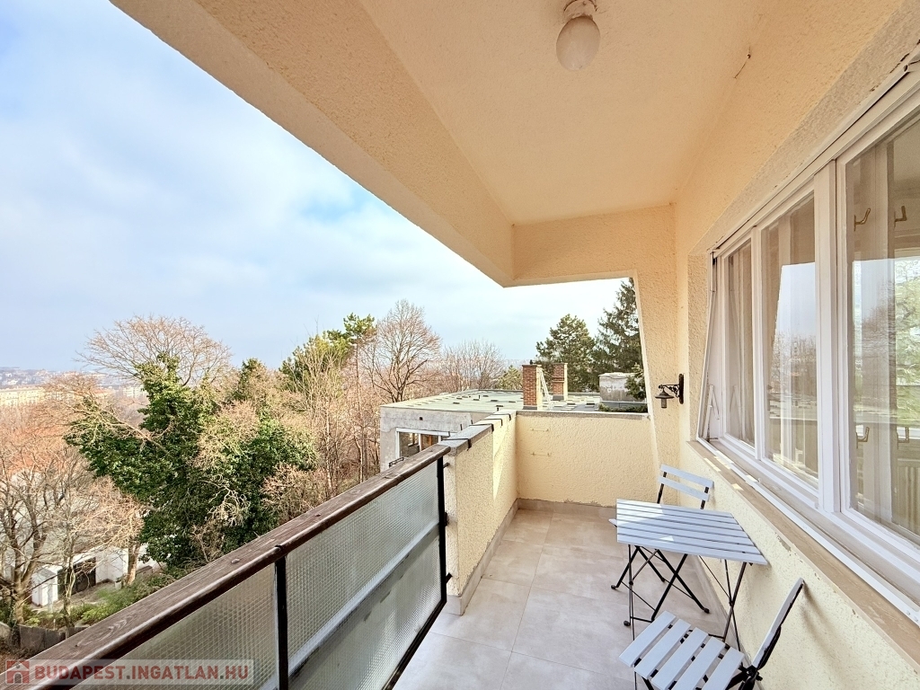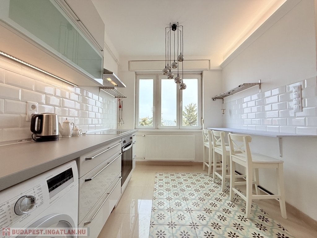 XII. KISSVÁBHEGY egyik legkedveltebb csendes mellékutcájában, a Kis-Sváb-hegy Természetvédelmi Terület és a Városmajor park között, néhány perc sétára a tömegközlekedéstől, LEGFELSŐ emeleti, 78 nm hasznos alapterületű, nappali + két hálószobás, keleti fekvésű, TELJESEN felújított, BÚTOROZOTT lakás, rózsadomb felé néző panorámás terasszal, tárolóval kiadó!