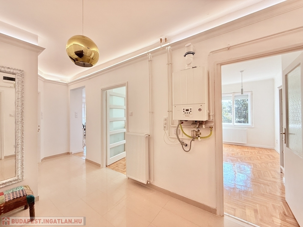 A nemrég befejeződött felújítás során az ingatlan teljes belső tere megújult, az alaprajzi elrendezéssel együtt, nagyobb, tágas terek kerültek kialakításra, új cirkófűtés (kondenzációs kazánnal), új burkolatok, valamint új, halvány szürke frontokkal szerelt, teljesen gépesített (elektromos sütő és főzőlap, kivezetett párelszívó, hűtő- és fagyasztó szekrény, nagy mosogatógép) konyhabútor is beépítésre került.
