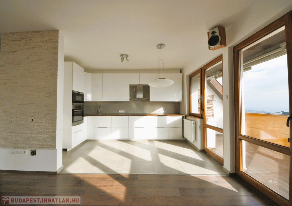XII. Széchenyi-hegy felső részén, a János Zsigmond utcánál, hegyvidéki környezetben, csendes zsákutcában, KITŰNŐ állapotú, 95 nm számított területű, nappali + 3 hálószobás, dupla-komfortos, klimatizált lakás, ELVEHETETLEN VÁROSI PANORÁMÁVAL rendelkező terasszal, 1 gépkocsi tárolására alkalmas önálló garázzsal, tárolóval hosszútávra kiadó!