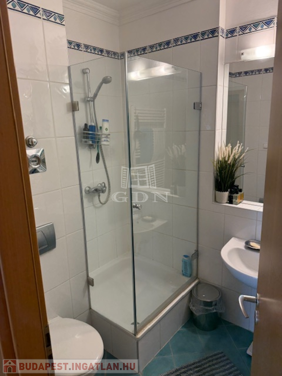 A lakás dupla fürdőszobával, gépesített konyhával és részleges bútorozottsággal rendelkezik, a képeken látható bútorok egy része a jelenlegi bérlő tulajdona.