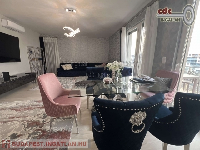 MARINAPARTON KIADÓ, ÚJSZERŰ, ELEGÁNS LUXUSLAKÁS KIADÓ! XIII. kerületben kínáljuk bérbevételre ezt a VII. emeleti, 122 m2-es + 30 m2-es teraszos, 4 szobás, amerikai konyhás, 2 fürdőszobás, egyedi mérésű házközponti fűtéses, egész nap napfényben úszó, csendes, újszerű állapotú lakást 2 db teremgarázs beállóval. Az ingatlan kitűnő elosztású, a szobák külön nyílnak, teraszkapcsolatosak, a konyha gépesített, magasfényű hófehér, az egész lakás elegáns, modern bútorokkal van berendezve. A ház 9 emeletes, liftes, újszerű állapotú, csodaszép belső kerttel és nagyon jó lakóközösséggel. A környék varázslatosan gyönyörű a Duna-part csodás lehetőségeket ad a víz és a természet szerelmeseinek. Szuper közlekedés, M3-as metró, buszok, Duna pláza. Az ingatlan 03.15-től költözhető. Közös költség 200 Euro / hó. A lakáshoz tartozik takarító, amelynek díját a bérlő fizeti. Minimum egy évre bérelhető. Két havi kaucióval és egy havi bérleti díjjal lehet szerződés kötni. Bérleti díj 3500 Euro + rezsi.