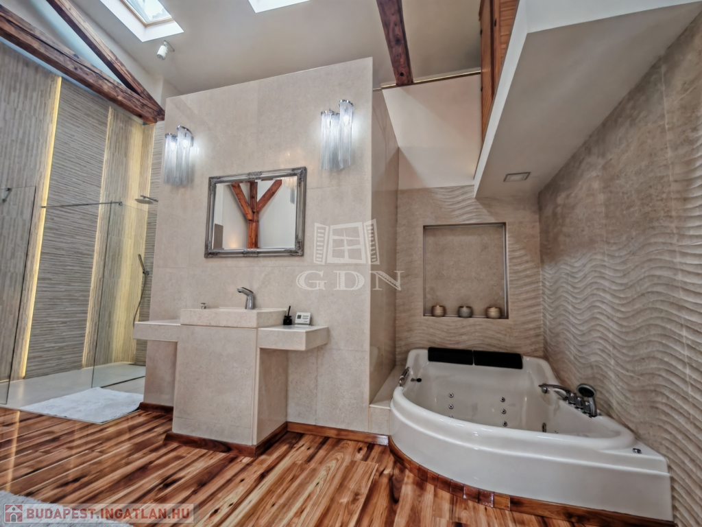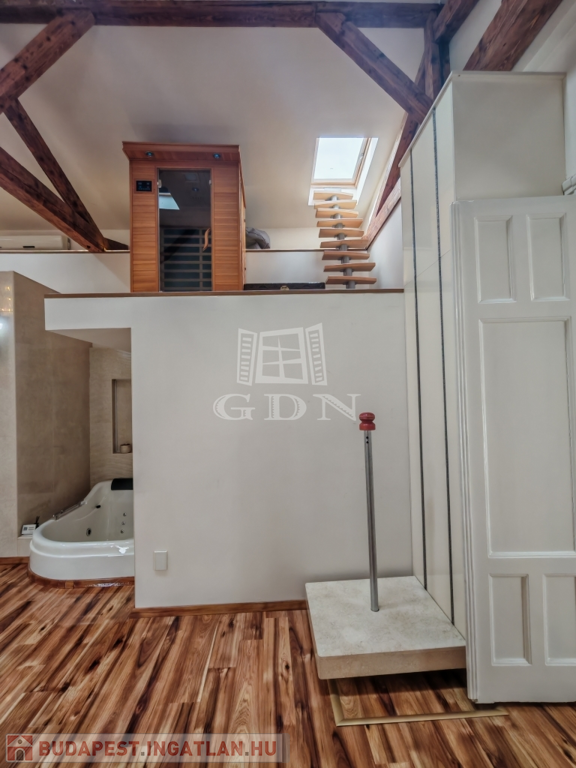 A 3 szobás ingatlan különlegessége a saját belső személyi lift, amely közvetlenül a privát infraszaunához és a Budai panorámás tetőteraszhoz vezet.