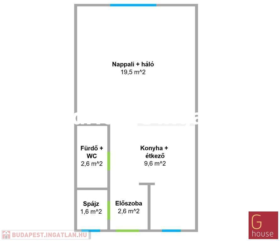 Az előtérből nyílik a modern, gépesített konyha, ahol egy kis étkezős pult is helyet kapott. Innen érhető el a világos szoba francia erkéllyel.