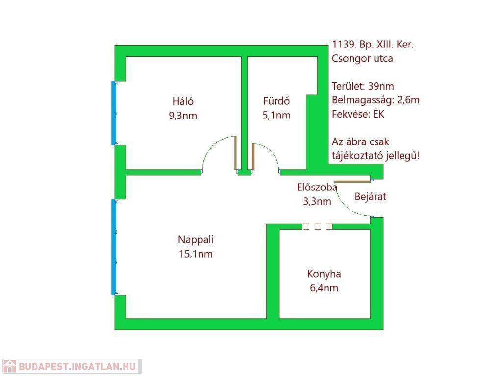 Budapest 13. kerületében, Csongor utcára néző, 2005-ben épült ház 3. emeleti világos, egyedi cirkófűtéses lakás kiadó teremgarázzsal együtt max. 1-2 fő felnőtt részére, vagy 1 felnőtt és egy gyerek számára. Az erkély nélküli, 40 nm, nappali + 1 hálós ingatlan bútorozott, hűtőszekrény és mosógép is van. Fürdőszobájában zuhanykabin, és a toalett is ebben a helyiségben található. Közös költsége: 18.000.- Ft. Bérleti díj: 250.000.- Ft/hó a teremgarázshellyel együtt, melynek bérlése nem kötelező. Tehát a lakás bérleti díja 230.000.- Ft, amennyiben nincs szüksége a garázsra. Dohányzás és állat tartása nem megengedett. Átlag rezsije mindennel együtt 35.000.- Ft havonta. 2 havi kaució letétele szükséges.