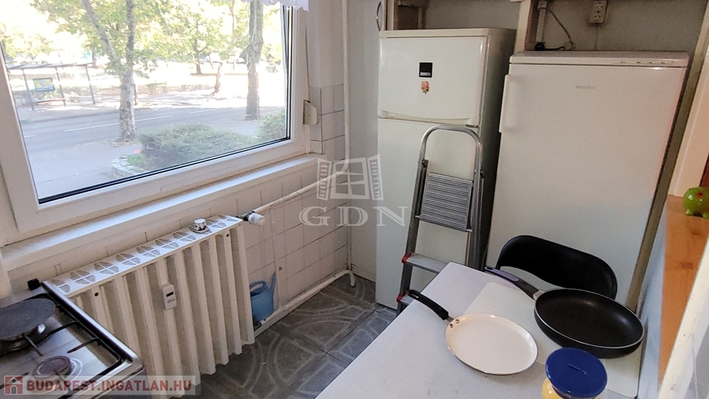 XIII. Gyöngyösi utcában, Metrótól 3 percnyire, 64 nm-es, 2 + 1 fél szobás, magas földszinti panel lakás bérbeadó.