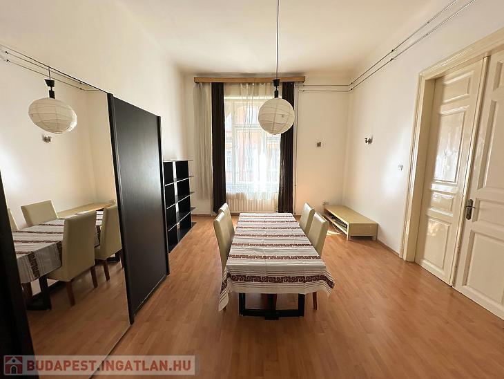 Kiadó a Radnóti Miklós utcában, egy polgári ház második emeletén található 67 nm-es, világos és tágas, két szobás lakás. A keleti fekvésnek köszönhetően reggeltől fényárban úszik, a cirkó fűtés gondoskodik a kellemes melegről. A lakás bútorozott, barátságos hangulatú, ablakai az utcára néznek. Ideális választás lehet családoknak és azoknak is, akik kisállattal költöznének. Elhelyezkedés szempontjából pár perc séta a Westend, éttermek, kávézók, közlekedési eszközök: metró, villamos, buszjáratok.