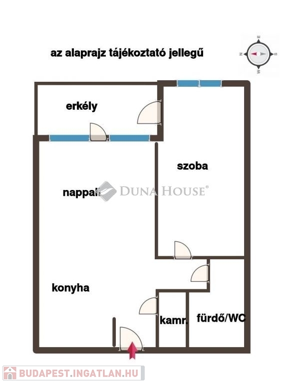 Elosztás: Amerikai konyhás nappali + tágas hálószoba + 6 nm-es erkély.