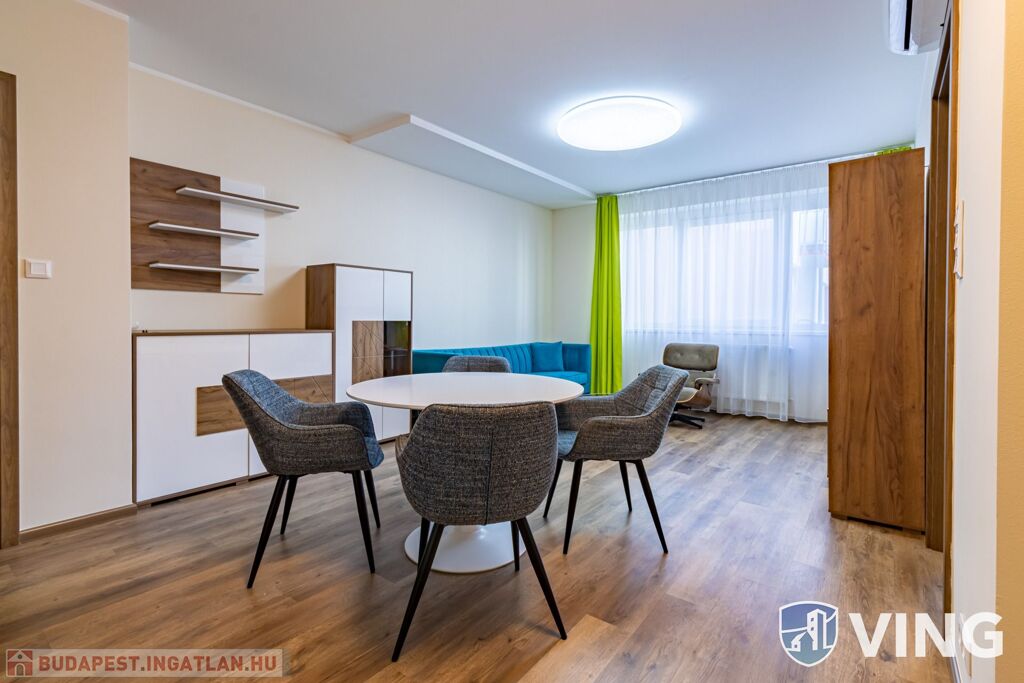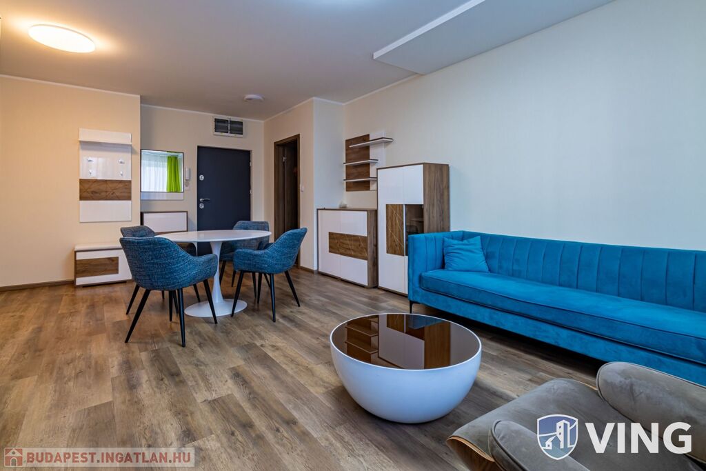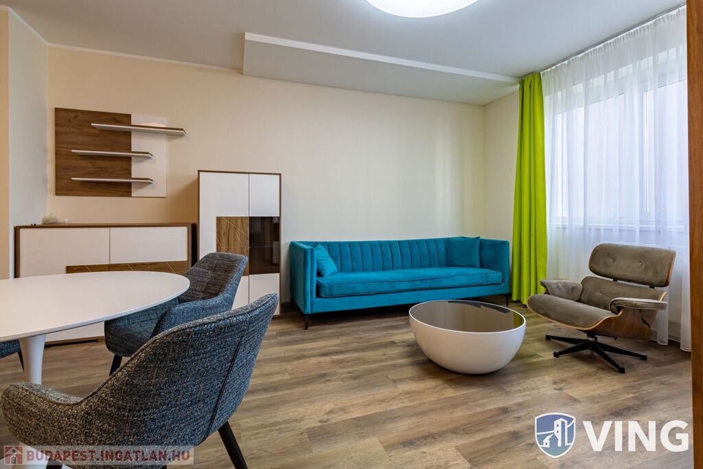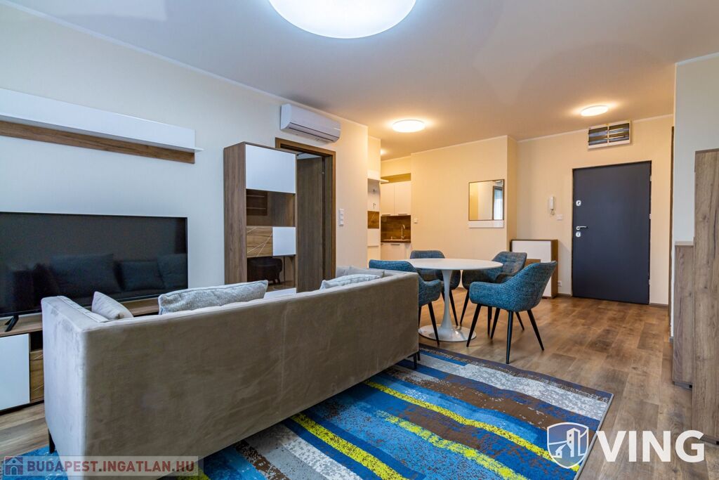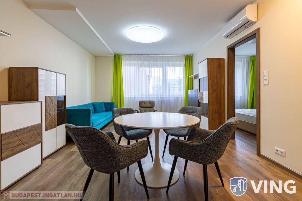 A lakás a képeken látható prémium bútorokkal és gépekkel van esztétikusan berendezve.
