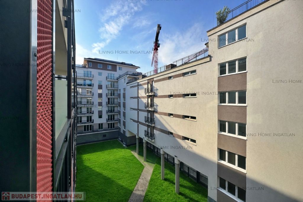 Be the first resident of this two-room, furnished apartment! A fourth-floor apartment is available for rent in a newly completed building on Lőportár Street in District XIII. The 45-square-meter property is quiet, as its orientation and the accompanying 6-square-meter balcony both face the inner, enclosed courtyard. The residential complex features common areas available for booking, a TV room, and a small library.