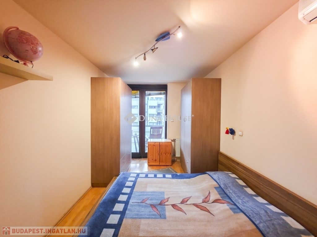 Az 5. emeleti, déli tájolású, amerikai konyhás nappalis + 2 külön nyíló szobás lakás állandóan világos és barátságos. A praktikus elrendezést külön WC, külön tároló és kényelmes fürdőszoba egészíti ki. Gyönyörű dunai panoráma tárul eléd. Az ingatlan szép, megkímélt állapotú, jó kisugárzású, azonnal otthonos érzést ad. A házban wellness-részleg, konditerem, valamint 024 órás portaszolgálat teszi teljessé a komfortot, teremgarázzsal együtt hosszú távra kiadó. Kiürítési nyilatkozat szükséges.