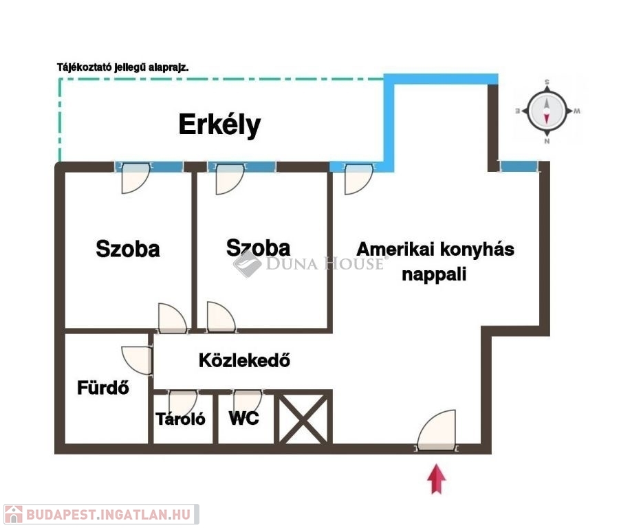 - Amerikai konyhás nappali + 2 külön nyíló hálószoba