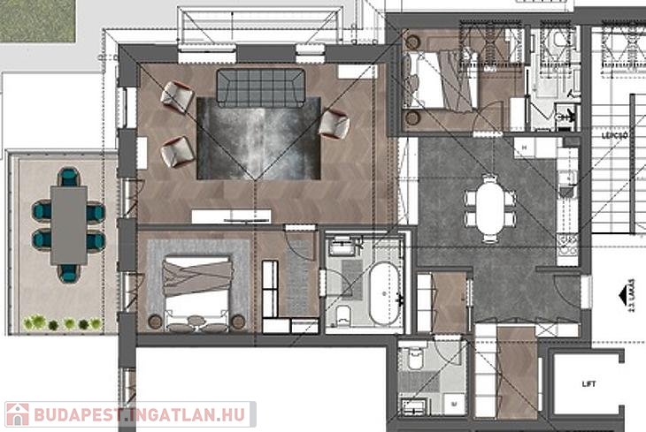 A fotók látványtervek, a lakás berendezése új bútorokkal valósul meg, melyek képtől eltérhetnek.
