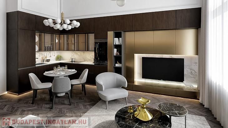 A fotók látványtervek, a lakás berendezése új bútorokkal valósul meg, melyek képtől eltérhetnek.