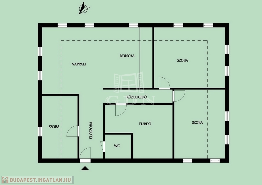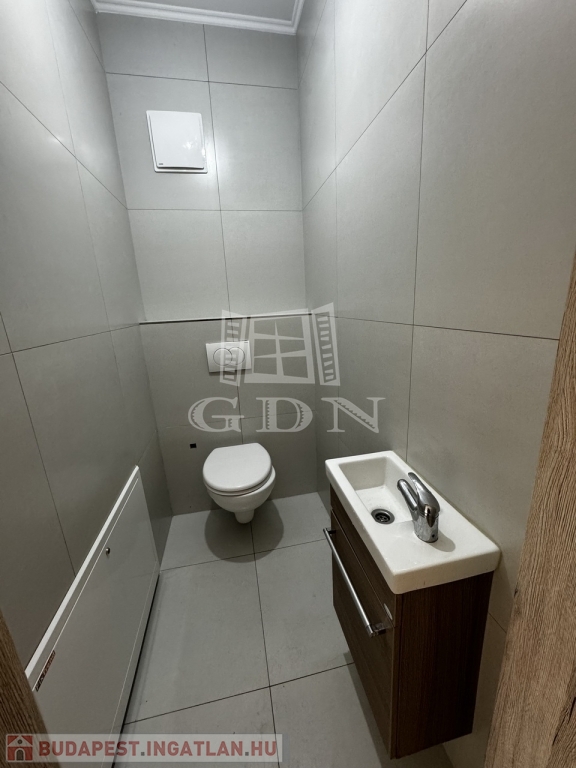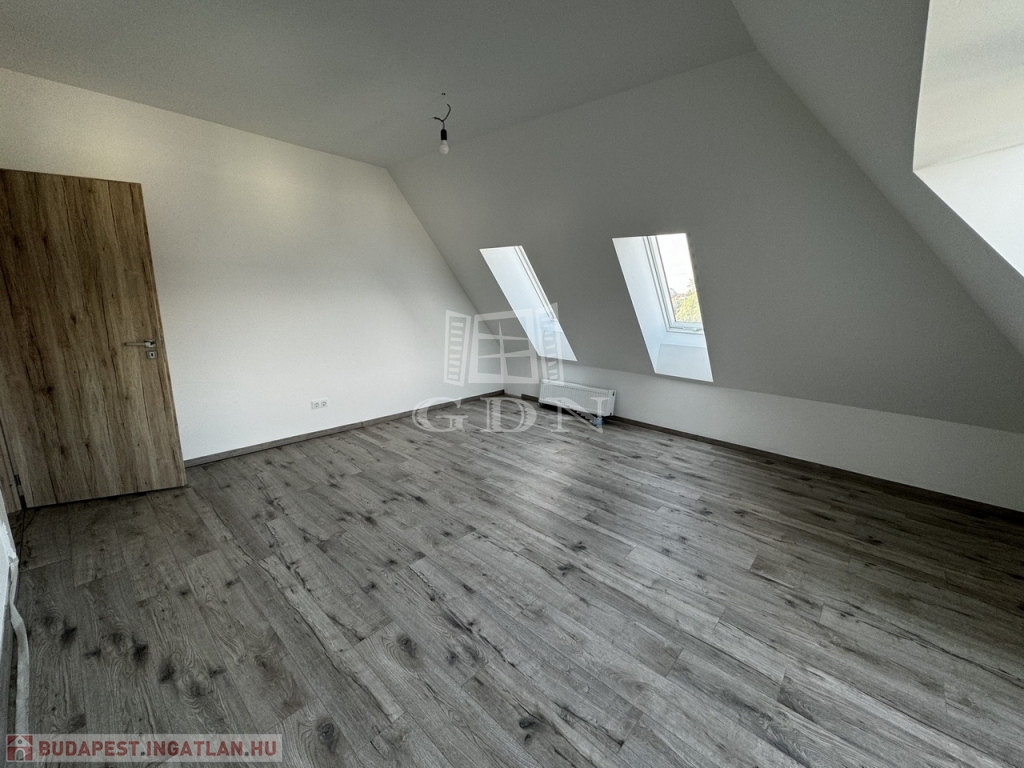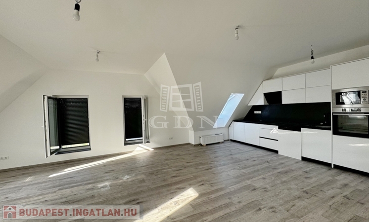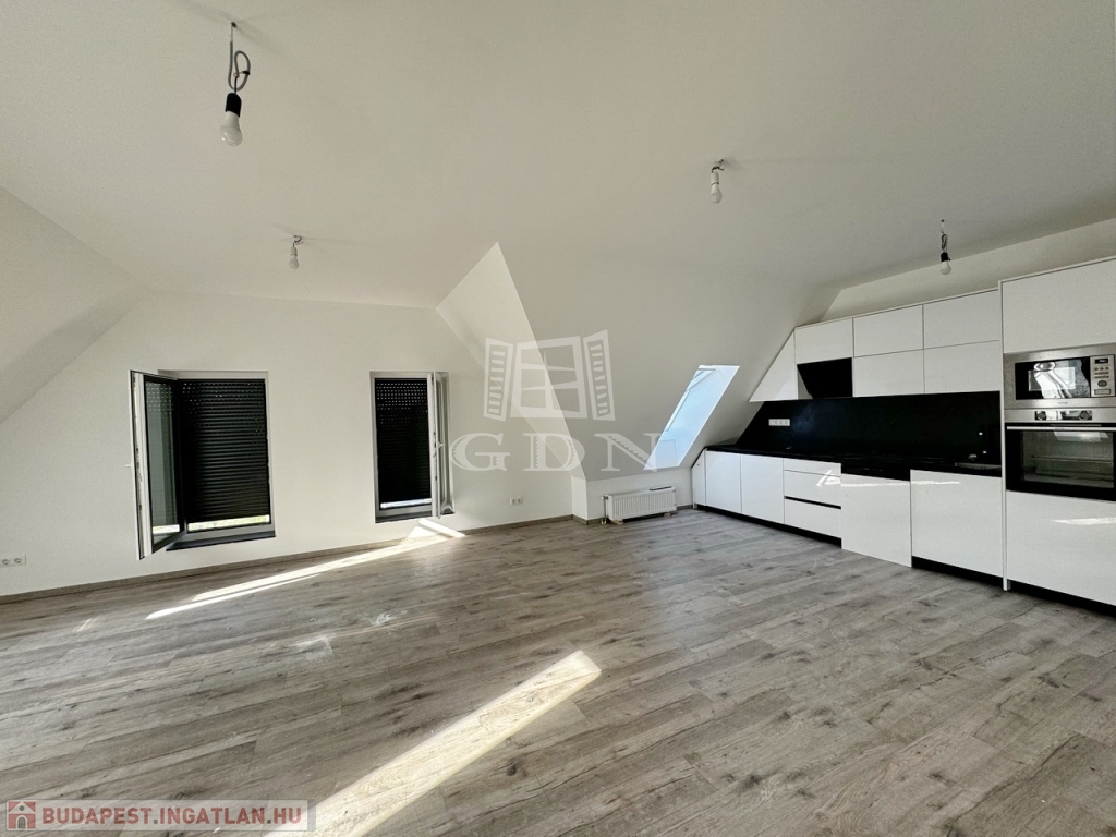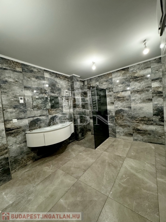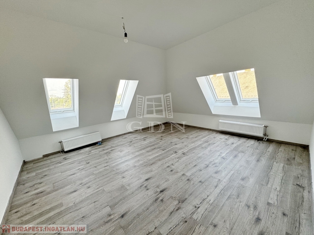 A 120 nm-es lakás egy újépítésű, háromszintes társasház 2. emeletén található, és új lakóját várja. Belépve tágas előtér fogad, innen nyílik a külön WC és az egyik hálószoba, szemben pedig a világos, amerikai konyhás nappali. A közlekedőből jobbra haladva érjük el a fürdőszobát és a további két hálószobát. A fürdőt járólap, a többi helyiséget parketta borítja.
