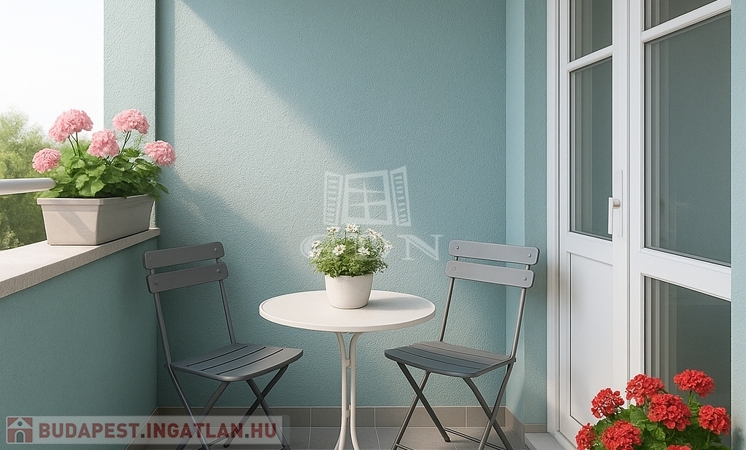 Az utcai kilátást biztosító lakáshoz tartozik egy 4 m²-es és egy 2 m²-es erkély, amely tökéletes helyszín a pihenésre.